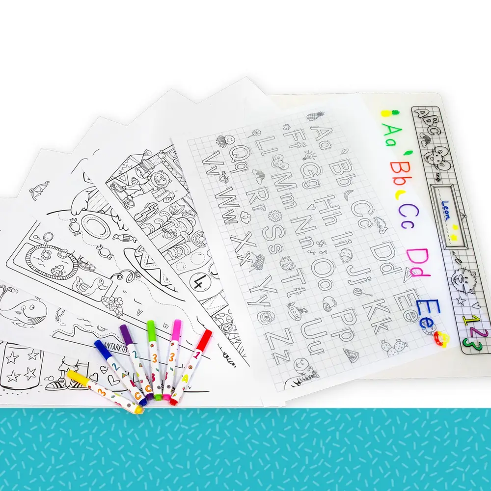 ABC CHAMPIONS Activity Schreibtischunterlage Wisch & Weg. Für noch mehr Spaß am Lernen sorgt diese Schreibtischunterlage mit tollen Features. Dieses Set besteht aus einer transparenten Schreibtischunterlage (45 x 30 cm), insgesamt 6 Papiervorlagen DIN A3 die unter die Unterlage geklemmt werden können und 6 abwischbaren Folienstiften. Auf den 6 verschiedenen Mal- und Übungsblättern kann die Welt der Zahlen und Buchstaben kennengelernt, Rätsel gelöst und die Kontinente unserer Erde erkundet werden. Mit den Folienstiften lässt sich das Geschriebene ganz leicht wieder wegwischen, so dass die Übungen immer wieder wiederholt und Lernziele schnell erreicht werden können.