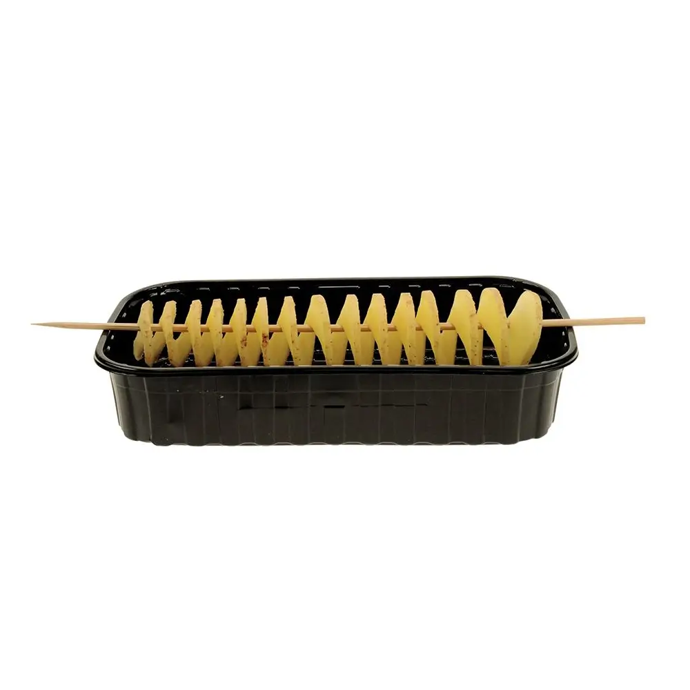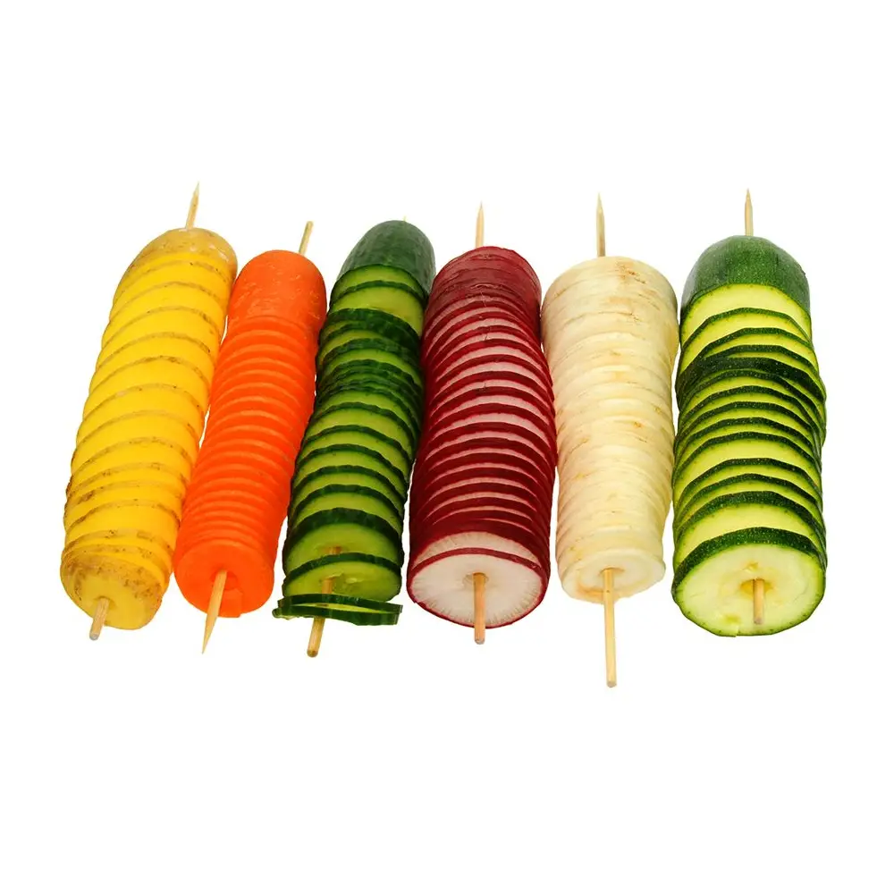 Kartoffeln werden in dünne Spiralen geschnitten. Anschließend frittiert oder in der Mikrowelle gechipt. Geniale Sache! Mit Gemüse funktioniert das natürlich auch.
