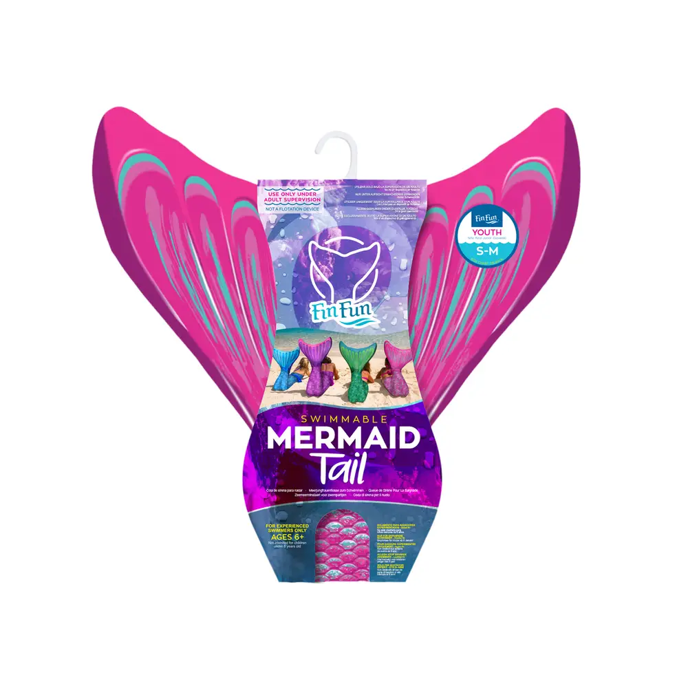 Die „Fin Fun Mermaidens“ aus pflegeleichtem elastischem Material, maschinenwaschbar, mit hoher Widerstandskraft gegen Ausbleichen, Salz und Chlor. Offenes Ende ermöglicht Wasserabfluß und schnelle Trocknung. Leicht an- und auszuziehen. Der Monoflossenüberzug aus Neopren aus dem Tauchsport ist bereits in den Stoff eingearbeitet. Die patentierte Monoflosse wird wie ein Strumpf getragen, weiche Manschetten verhindern Druckstellen – es gibt keine Riemen! Damit passt die Monoflosse für Schuhgröße 27,5 – 39.. “ Ab 6 Jahren.