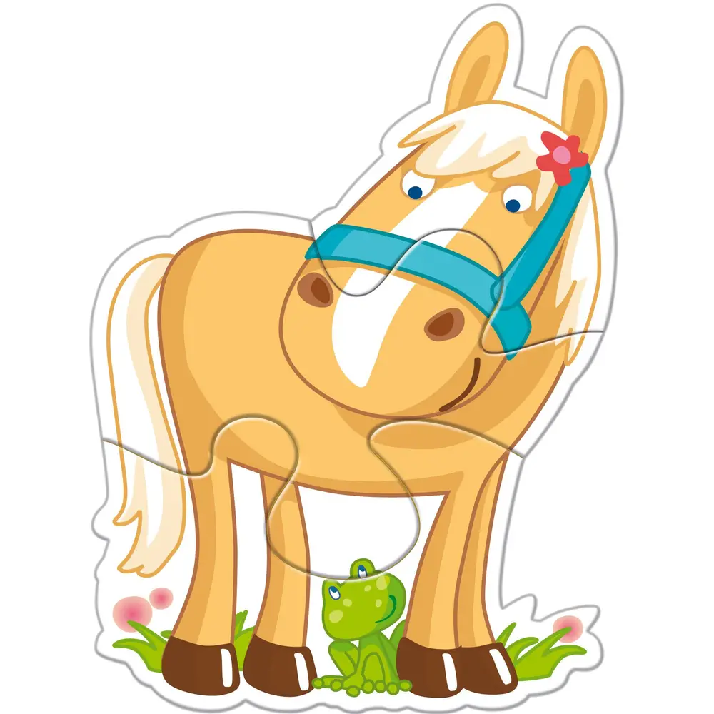 6 erste Puzzles mit großen Teilen für kleine Hände und Holzfigur zum freien Spiel.