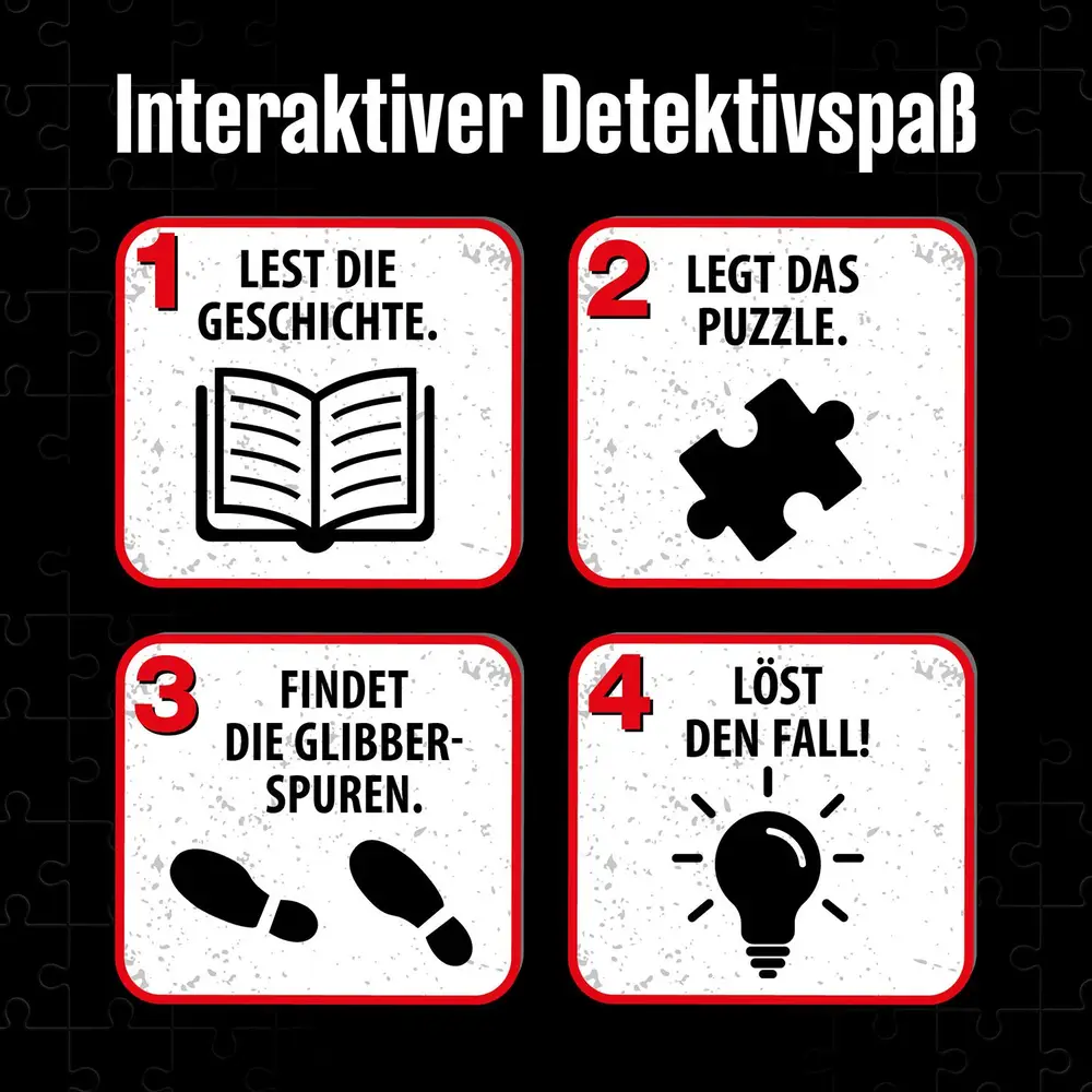 Ein Schleim-Monster in Rocky Beach? Die Ermittlungen führen Die drei ??? zum Monsterhaus auf dem Rummel. Gemeinsam mit Justus Jonas, Peter Shaw und Bob Andrews tauchen Kinder ab sieben Jahren ein in die exklusive Kurzgeschichte. Wie ein echter Detektiv einen spannenden Fall lösen! Dafür legen sie allein oder im Team das Puzzle. Was genau ist passiert? Wer ist verdächtig? Puzzleteil für Puzzleteil erscheint der Tatort. Manche Hinweise verstecken sich im Wimmelbild und sind nicht sofort sichtbar. Tolles Extra im Krimi-Spiel: glibbriges Schleimpulver zum selbst anrühren mit Dose zum Aufbewahren.