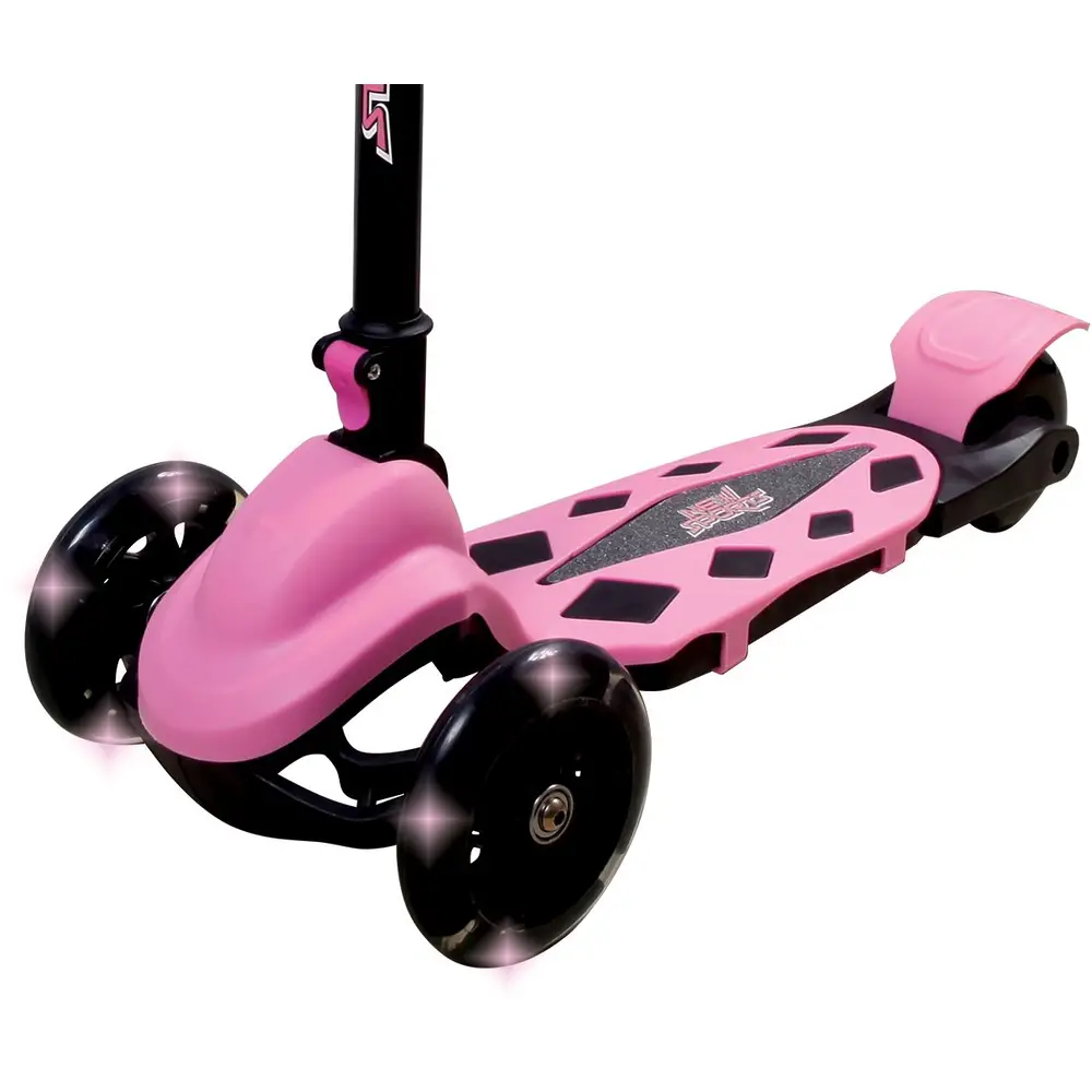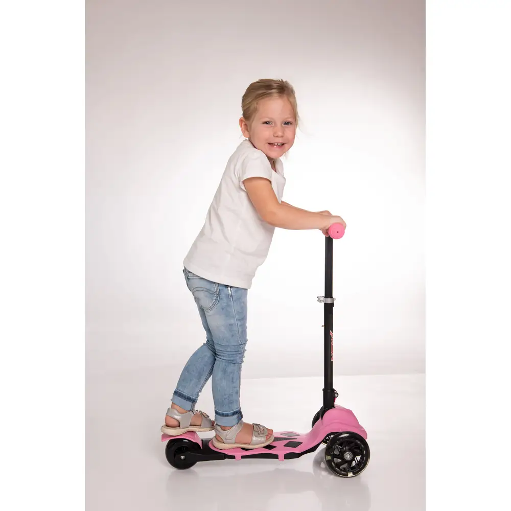 New Sports 3-Wheel Scooter Rosa, klappbar, 120mm. ABEC 7 Kugellager. PU Fronträder. Trittbremse. Klappbar. Maximale Belastung 50 kg. Maße ca. 55x24x66,5cm. Breite des Decks ca. 14cm. Für Kinder ab 3 Jahren.