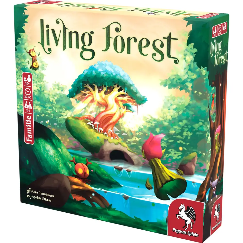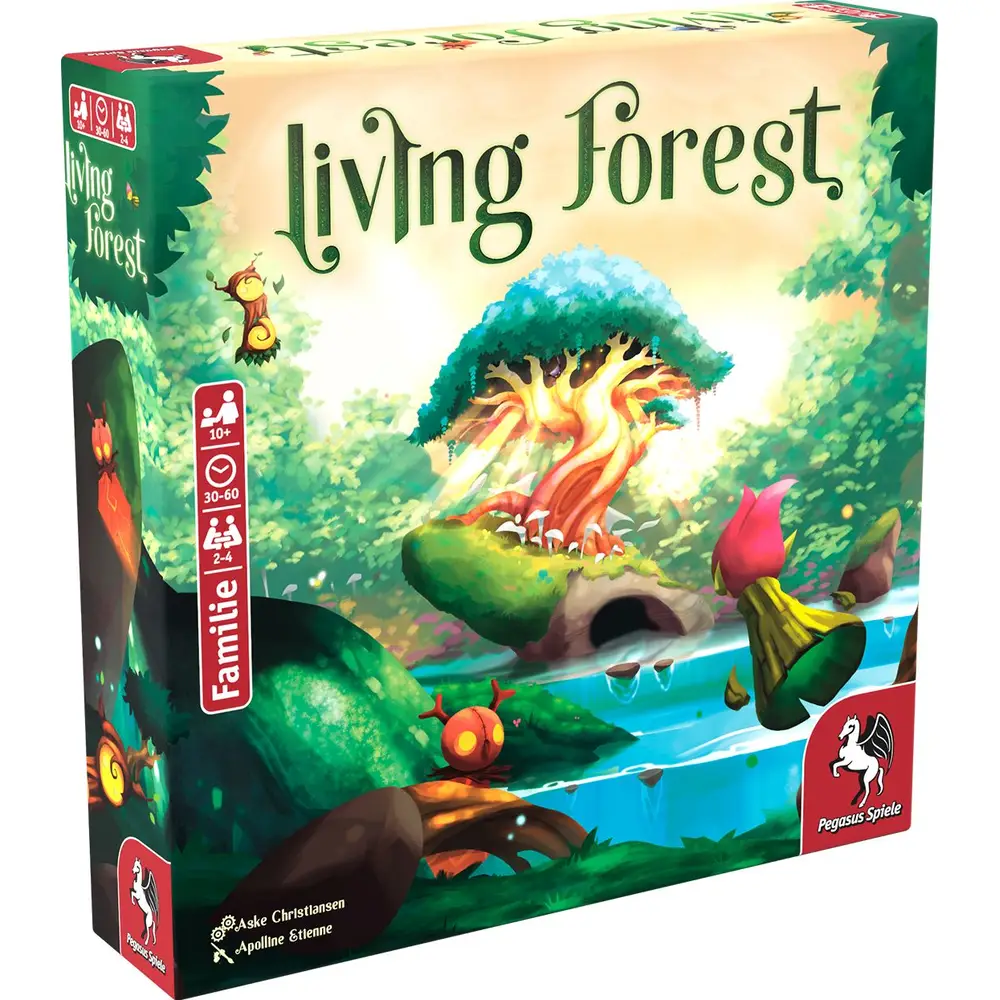 Ein mystischer Wald, Quell der Ruhe und des Friedens, wird von den verheerenden Flammen des Onibi bedroht. In Living Forest schlüpfen die Spielenden in die Rollen der Naturgeister Frühling, Sommer, Herbst und Winter und wollen den Wald beschützen, indem sie die Flammen löschen, Bäume pflanzen oder den Wächter des Waldes erwecken. Wem wird es gelingen, Onibi in die Flucht zu schlagen? In jeder Runde decken die Spielenden – jede*r für sich – Karten ihrer Decks auf, die unterschiedliche Waldtiere zeigen. Diese hilfreichen Waldwesen bringen diverse Elemente mit. Doch unter den Tieren gibt es Einzelgänger, von denen nicht zu viele auf einmal aufgedeckt werden sollten. Mit den Elementen können die Spielenden ein bis zwei Aktionen durchführen und so Bäume pflanzen, Flammen löschen, sich auf dem Steinkreis bewegen, um diverse Boni zu aktivieren, neue Tiere anlocken oder Magiefragmente erhalten. Am Ende jeder Runde müssen sich dann alle Spielende gleichermaßen den verbleibenden Flammen im Steinkreis stellen. Können sie diese nicht abwehren, müssen sie Feuerwarane in ihr Deck aufnehmen – griesgrämige Einzelgänger-Tiere, die keine Elemente beisteuern. Nur mit Magiefragmenten kann man sie wieder loswerden! Das Spiel endet, sobald eine Person es schafft, eine der drei möglichen Siegbedingungen zu erfüllen. Ab 10 Jahren, für 2 – 4 Spieler. Spieldauer: 30 – 60 Minuten.