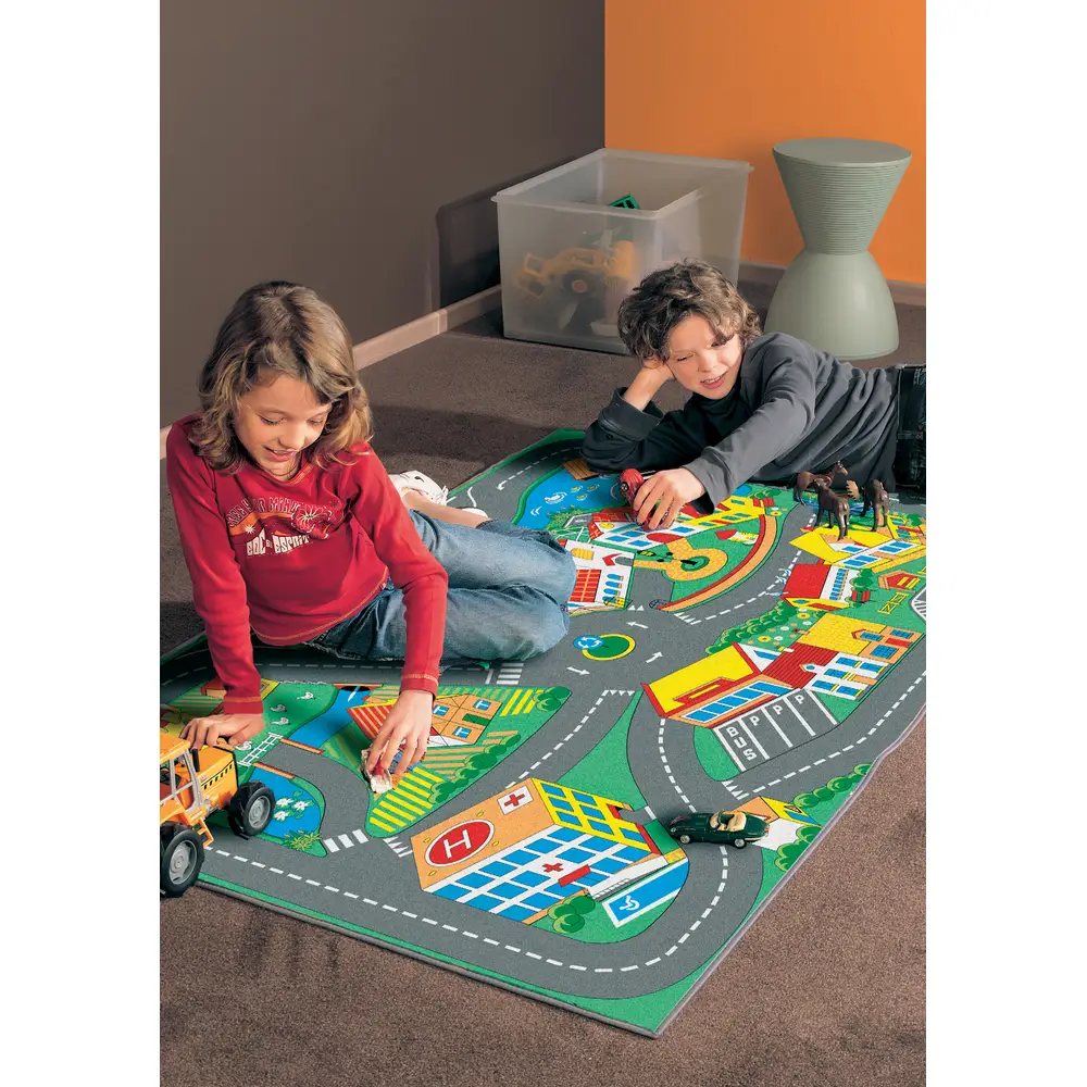 Dieser tolle Straßenteppich mit vielen Details bietet viele Möglichkeiten. Er lädt zum Spielen ein und regt die Fantasie an. Für Fußbodenheizung geeignet.