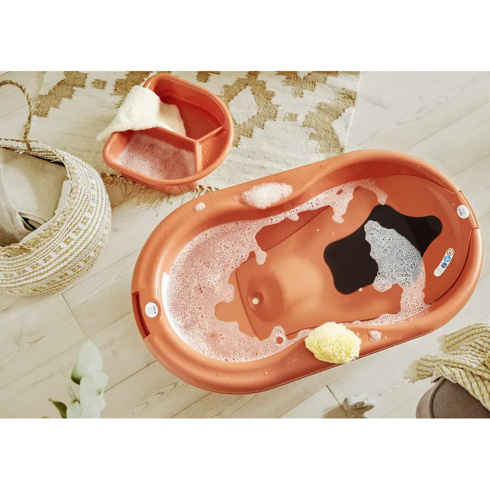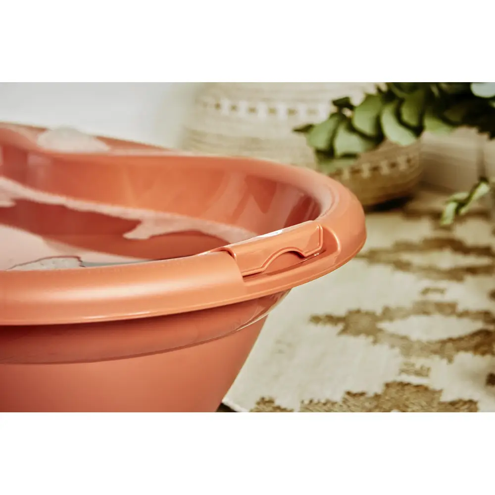 Designer Badewanne von Rotho Babydesign – In vielen exklusiven Kunststofffarben mit speziellem Pearl-Effekt oder matt/glänzend. Anatomisch und ergonomisch geformt. Mit Anti-Rutsch-Matte. Beidseitig nutzbar: Kleinkindseite mit Sitzmulde, Neugeborenenseite mit Anti-Rutsch-Polster und Armauflage für die Mutter. Integrierter Ablaufstopfen. Praktische Tragegriffe. Gefertigt aus hochwertigem, recyclebarem Polypropylen. Robuste, dickwandige und langlebige Qualität. Markenprodukt: Made in Germany.