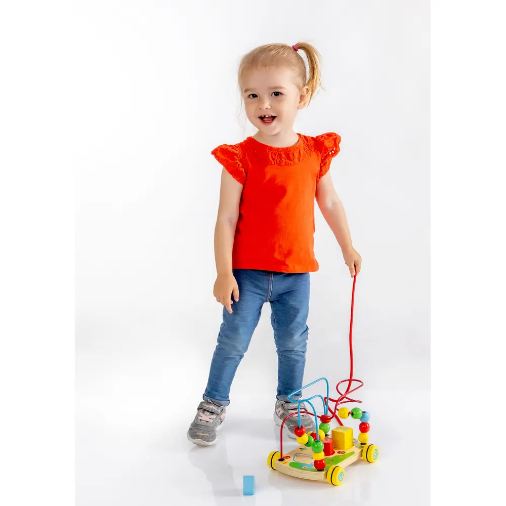 SpielMaus Holz Nachziehwagen mit Motorikschleife. 2-fach sortiert. Maße ca. 21,5x17x15,5 cm. Für Kinder ab 12 Monaten.