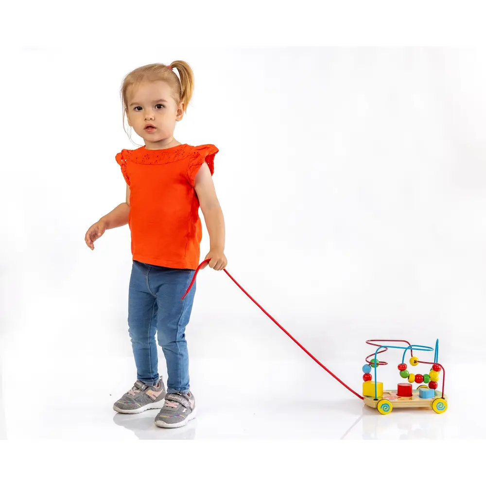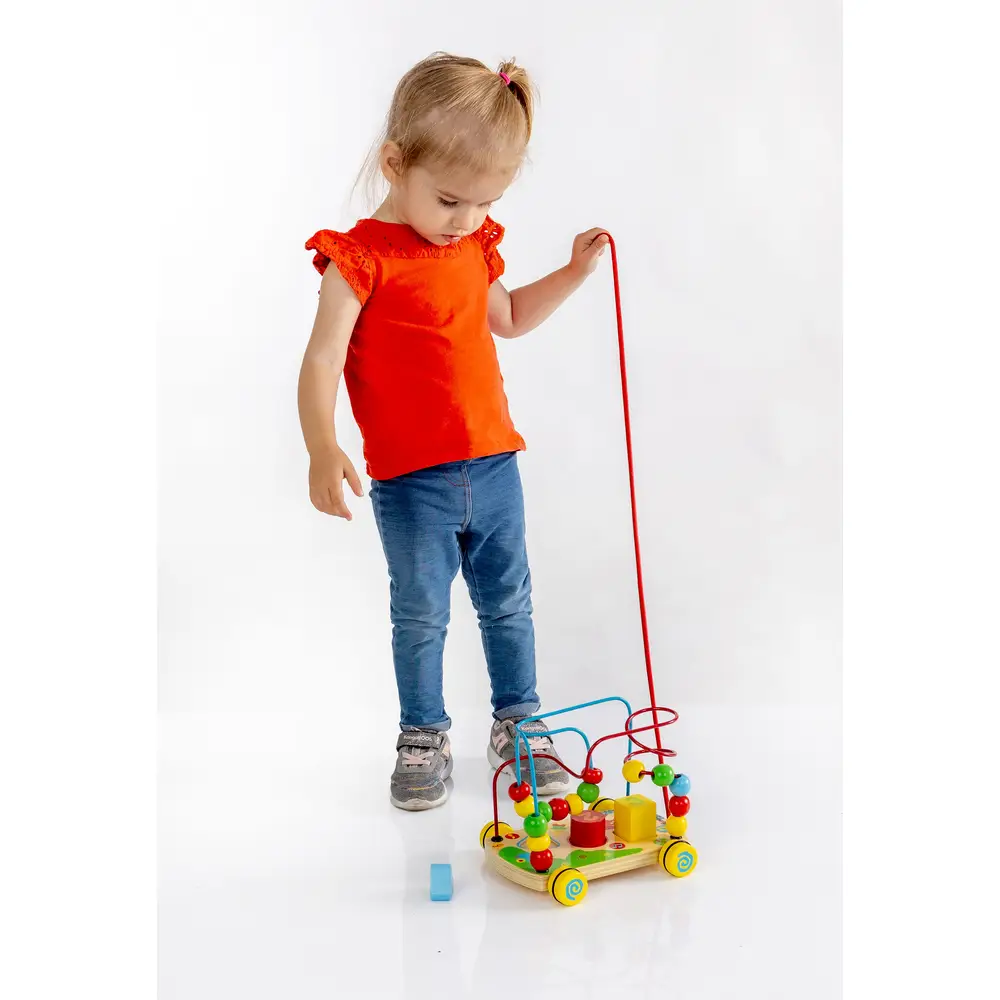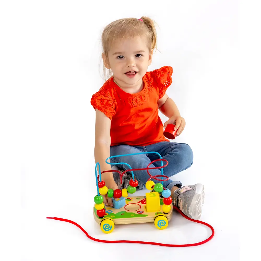 | Bezeichnung | SpielMaus Holz Nachziehwagen mit Motorikschleife, ca. 21,5x17x15,5 cm, ab 12 Monaten |