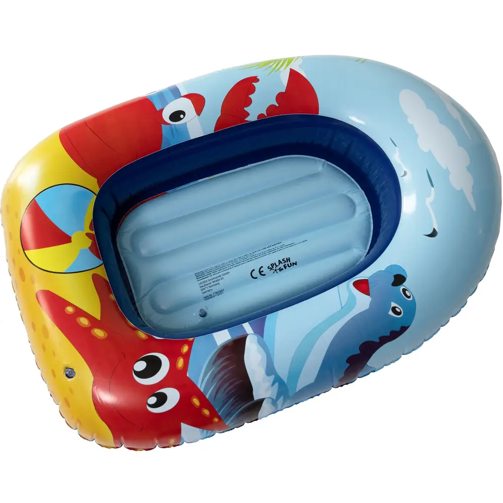 Splash und Fun Kinderboot Beach Fun. Aus langlebigem PVC. Materialdicke 0,20mm. Maße aufgeblasen: 90x60cm. Für Kinder ab 3 Jahren.