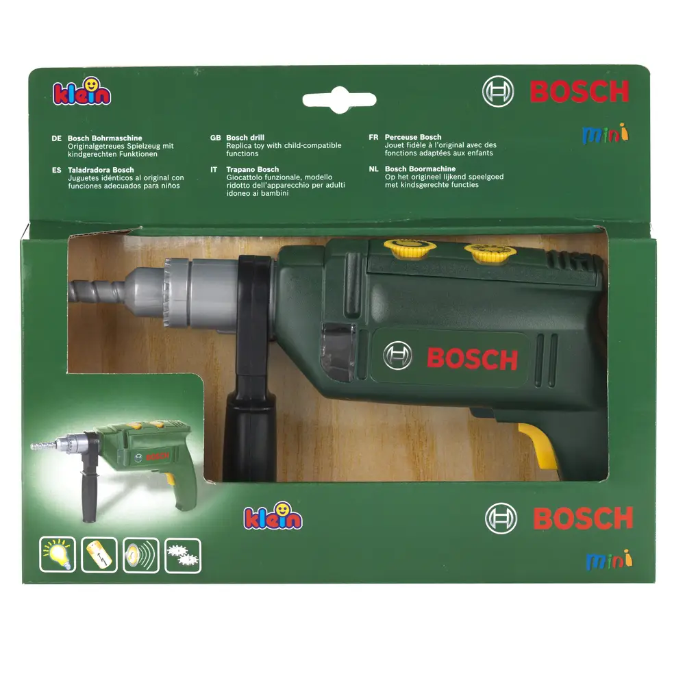 Bosch Bohrmaschine Spielzeug mit kindgerechten Funktionen – Batteriebetrieben – Mit rotierendem Bohrer – Bei Eindrücken des Bohrers: – Realistisches Bohrgeräusch – Ungefährlicher Funkenschlag – Originalgetreue Nachbildung im Bosch Design – Geeignet für Kinder ab 3 Jahren